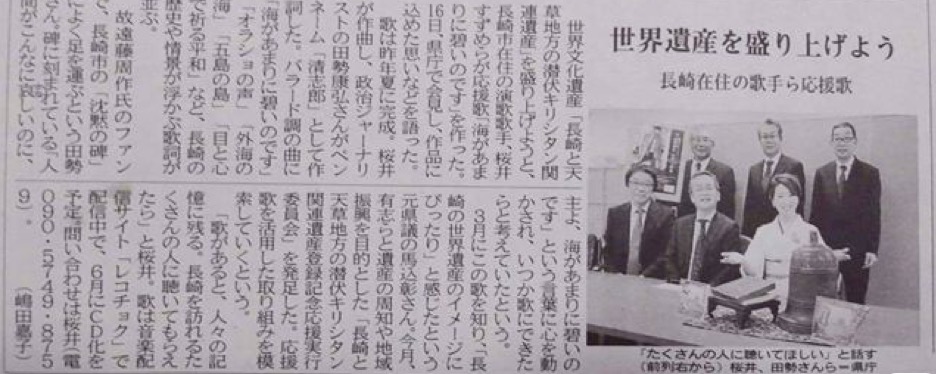 「長崎と天草地方の潜伏キリシタン関連遺産」登録のイメージソング(応援歌)「海があまりに碧いのです。」発表会の報告と御礼!