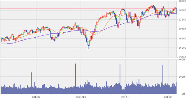 ギリシャ問題で一時的に下げるも、金融緩和で大幅上げ基調に変化なし。いまやユーロ圏の金融戦争は富裕のドイツ対貧困のギリシャになっているが、同じユーロ圏でありギリシャに対する経済振興策のないユーロ主要国がリードする政策では、これからも同じような問題が何度でも訪れよう。