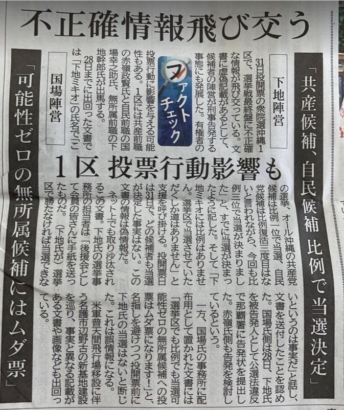 31日の投開票を待たずして赤嶺候補、国場候補が当選したという事実はありません。